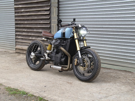 The front end was given a new face using a used Buel XB12S headlight and bespoke steel cowl to hide the wiring harness as it would normally be in the headlight bucket.